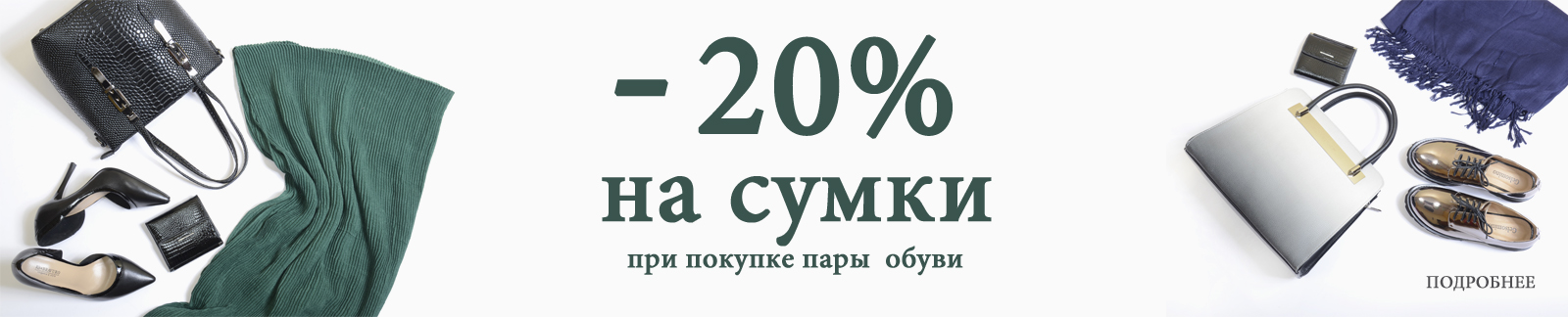 Скидка 20% на сумки при покупке обуви