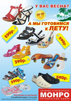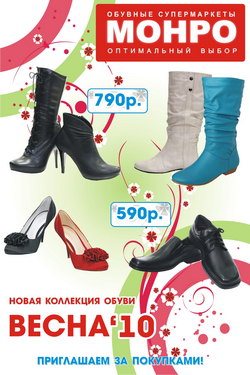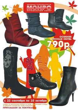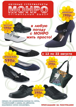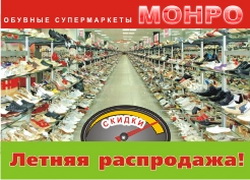 Началась традиционная зимняя распродажа в МОНРО, на весь ассортимент обуви, кожгалантереи, одежды и белья покупателям предоставляется дифференцированная скидка до 50%.