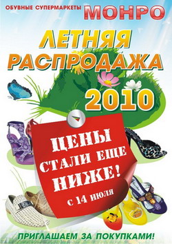 Жаркая Распродажа в МОНРО. Тут и добавить нечего. Наоборот! С 14 июля Цены в МОНРО еще МЕНЬШЕ! Юбилейная летняя распродажа в самом разгаре, присоединяйтесь!