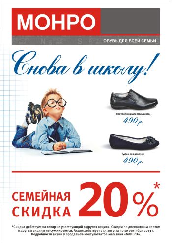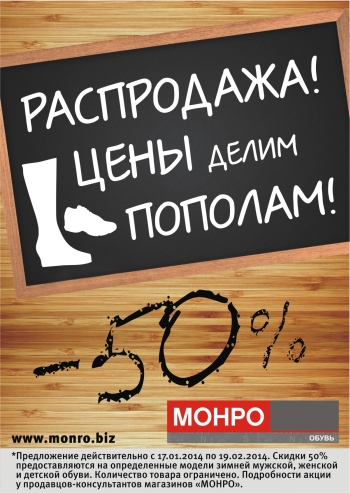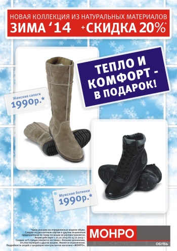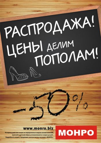 «Монро» дарит ощущение праздника и существенную экономию для всей семьи уже сейчас! Возможность купить обувь в разгар сезона дешевле в два раза - это то, за что покупатели так ценят «Монро».